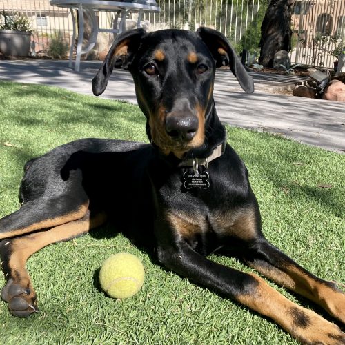 Potty Trained, crate trained, plays fetch, knows sit, down, wait and stay. Loves people and dogs (would do best with playful & tolerant dogs as she can play hard). Rides great in car, loves to train and very food motivated. Heels, confident and quiet. Good at following the energy of the room.