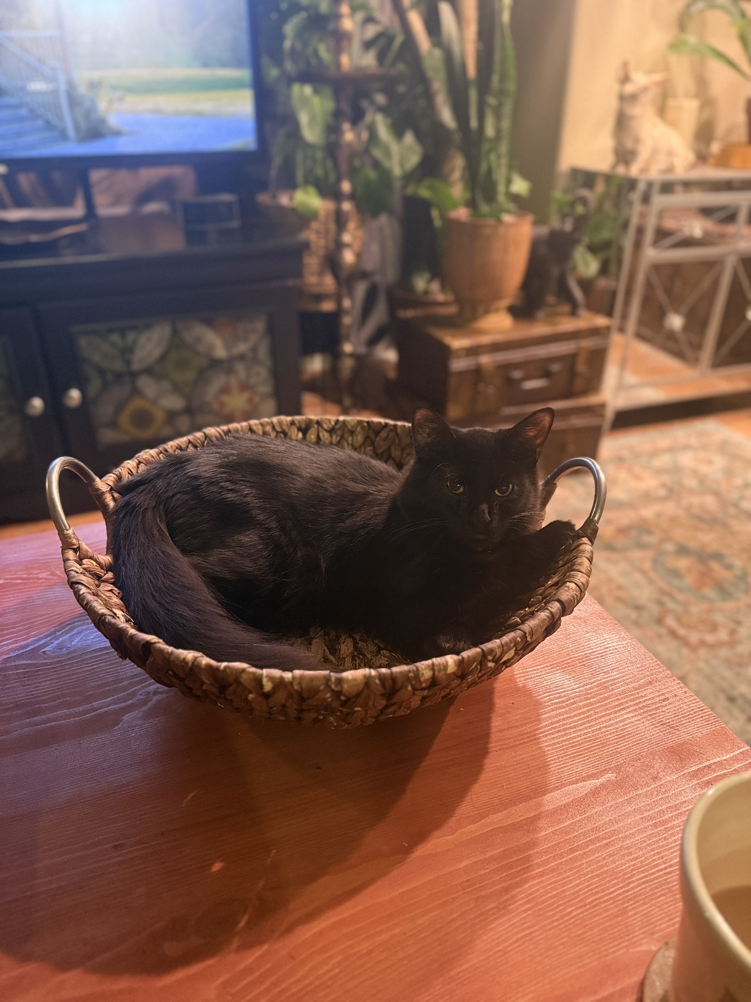 When he’s not demanding sustenance or scaling heights, Moggers is a quirky sun-worshipper. He loves to relax and lay in his hammock in the sun. And occasionally, because he is a true comedic legend, he likes to nap in the cat bowl.